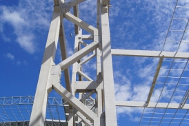 Obra similar à Navship, porém com modulação lateral de 13 metros (7 metros a mais), onde desenvolvemos solução para aumentar a velocidade da montagem e reduzir custos, através de sistema de ligação das diagonais aos pilares utilizando parafusos e consolos, com posterior grauteamento de forma a termos solução de conexões rígidas.