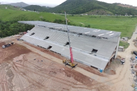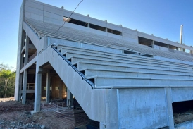 O principal desafio foi definir a solução para um paredão de fachada com 20 x 120 metros, com aberturas para acesso e ventilação, onde foi utilizado sistema de painéis de concreto protendidos. A execução da obra dentro do prazo estabelecido era fundamental para a estreia do time em casa pelo Campeonato Catarinense.