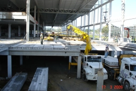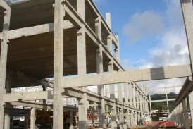 A obra trata de um prédio comercial com estacionamento em toda área inferior, onde foram utilizadas lajes alveolares que aceleraram a execução e possibilitaram o atendimento do cronograma previsto, com ausência de escoramentos e entulhos.