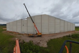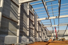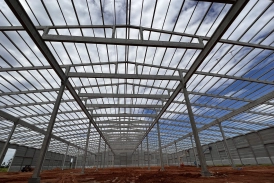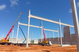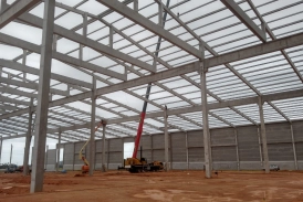 O principal desafio desta obra foi projetarmos uma cobertura com possibilidade de uso futuro de correia transportadora no centro do prédio, sem presença de pilares próximos, considerando o risco das manobras de equipamentos rodoviários pesados utilizados diariamente na operação industrial.