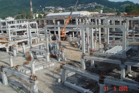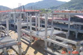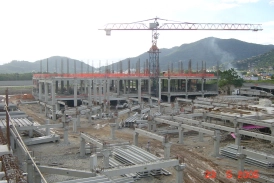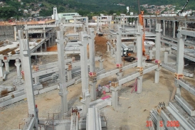 A utilização de lajes protendidas garantiu o cumprimento do cronograma, com ausência de resíduos e menor incidência de mão-de-obra. Um dos principais desafios foi a montagem em terreno de solo mole (mangue), necessitando utilização de poços para rebaixamento do lençol freático permitindo assim o tráfego dos equipamentos.